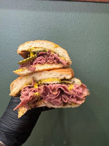our own moist and delicious recipe with local beef, topped with a sweet tomato glaze